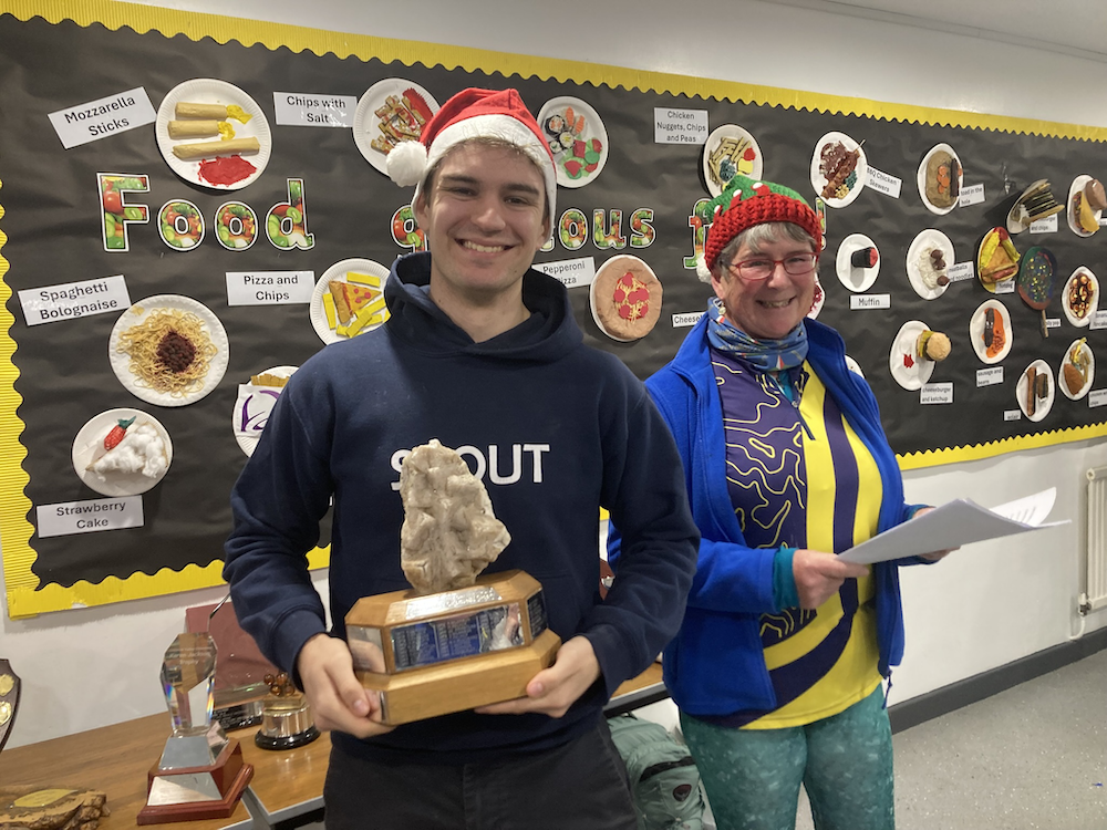 The orienteer of the year doesn’t have to be the best or the fastest or the most podium places. The orienteer of the year can be someone who is just astounding. Many of you will remember Judith Holt coming back from hip surgery with a careful recovery plan which all went pear shaped when she trotted downhill at the New Year’s Day event in 2024. But because she is Judith, she didn’t give up and, because she takes training more seriously than most mortals, she is back in contention. Not content with her improvements on the Short Green course, Judith has, this autumn and winter, switched back to Green courses and is a force to be reckoned with. Judith, your recovery is an inspiration to us all and a message to never give up. Congratulations.