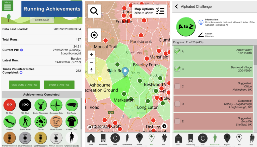 Like orienteering, Parkrun lends itself to all sorts of metrics, such as percentage performance in age group, best times, average times etc. DVO’s Murray White has done 115 parkruns at 25 different locations. 30x volunteering at Poolsbrook, including being Race Director twice. Nice that volunteering is also measured and recognised!