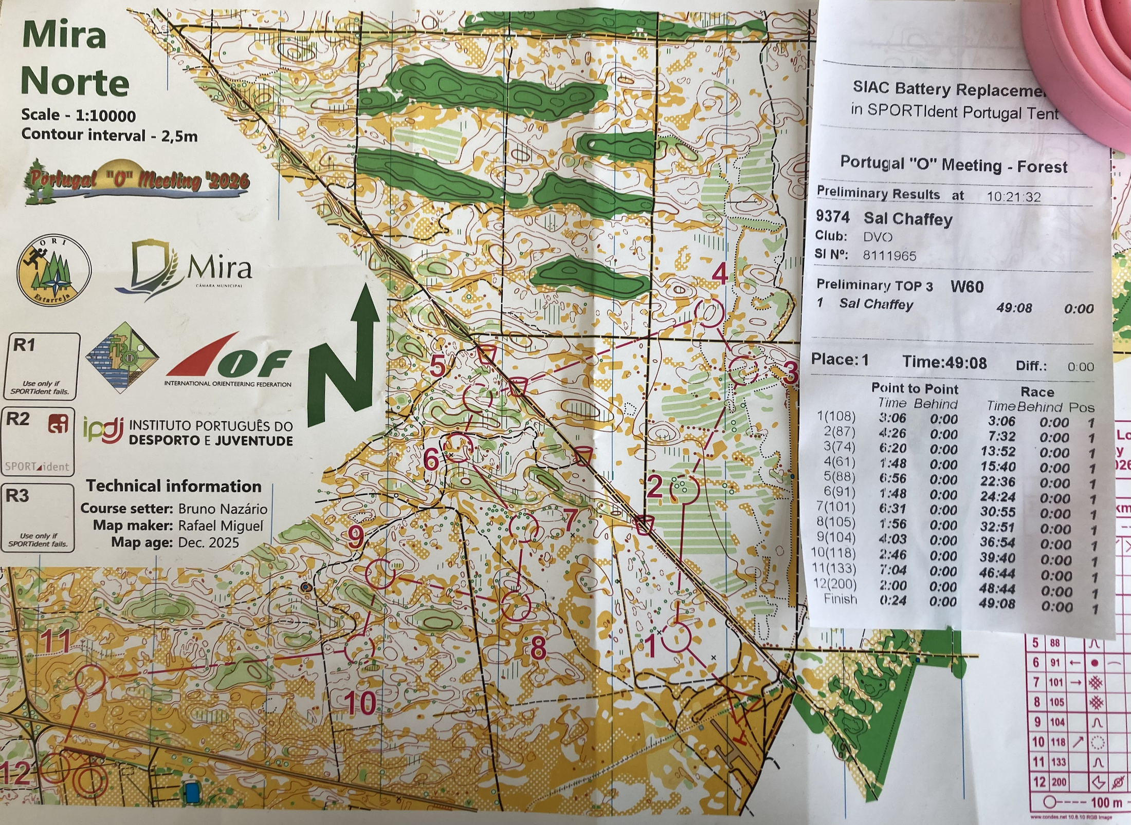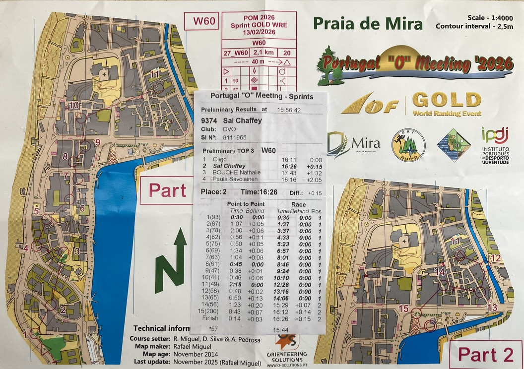 Last year was memorable for its mud – some of the days being on a former orchard that’s now used by the Loulé trials bike club. This year was memorable for the sand – lightly vegetated dune ridges with acacia in blossom. Sand got in our eyes on the first couple of legs of the Sprint in the quaint resort town of Mira.