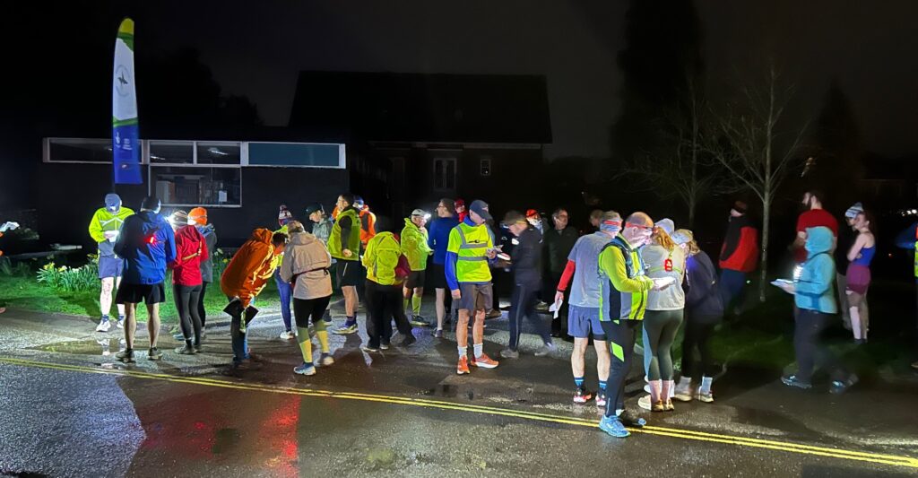 Duffield was by far the wettest Thursday event so far. So much so that everyone dived for cover before the usual post run photo – hence the ‘perusal photo’ minutes before the mass start.